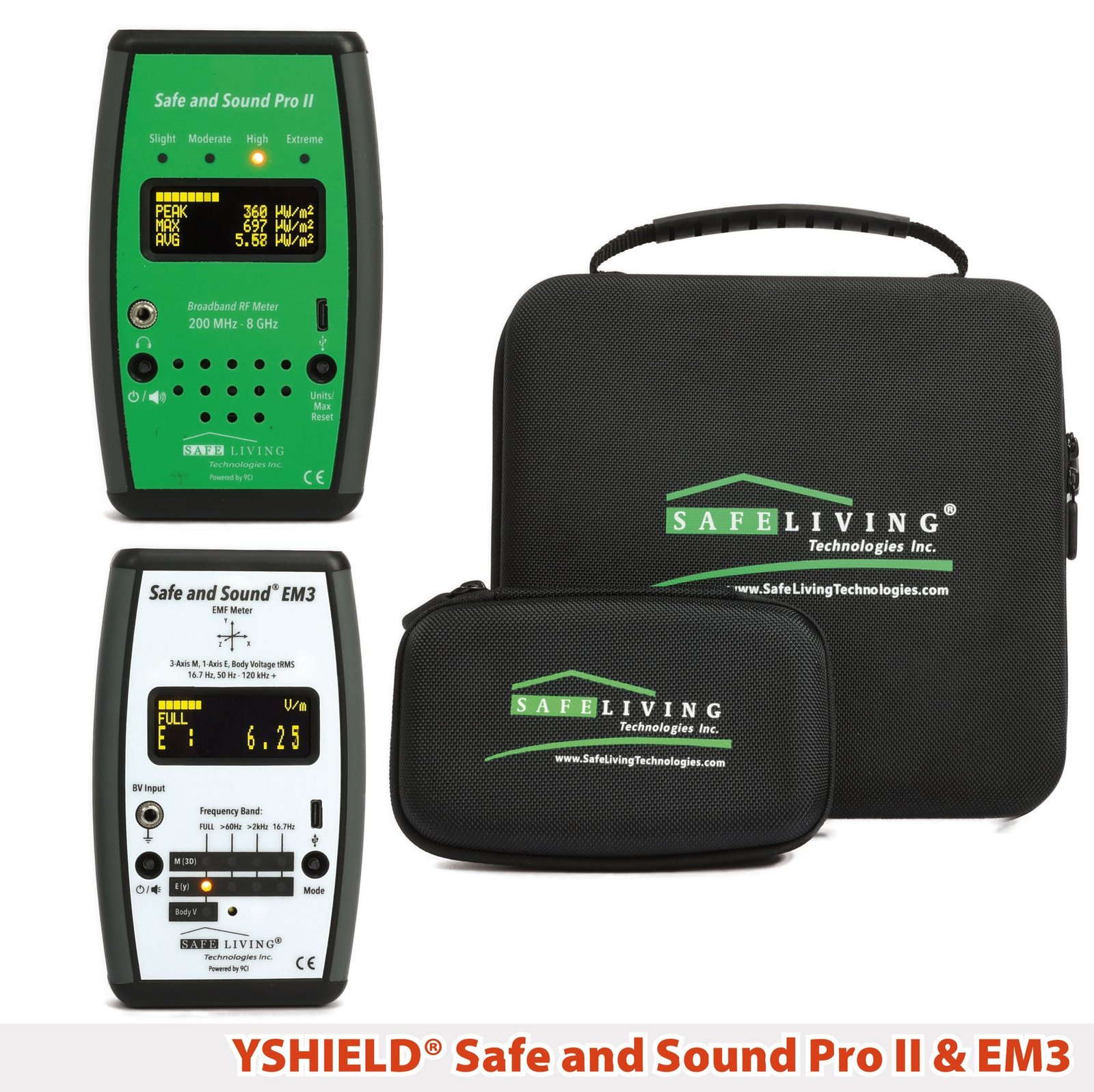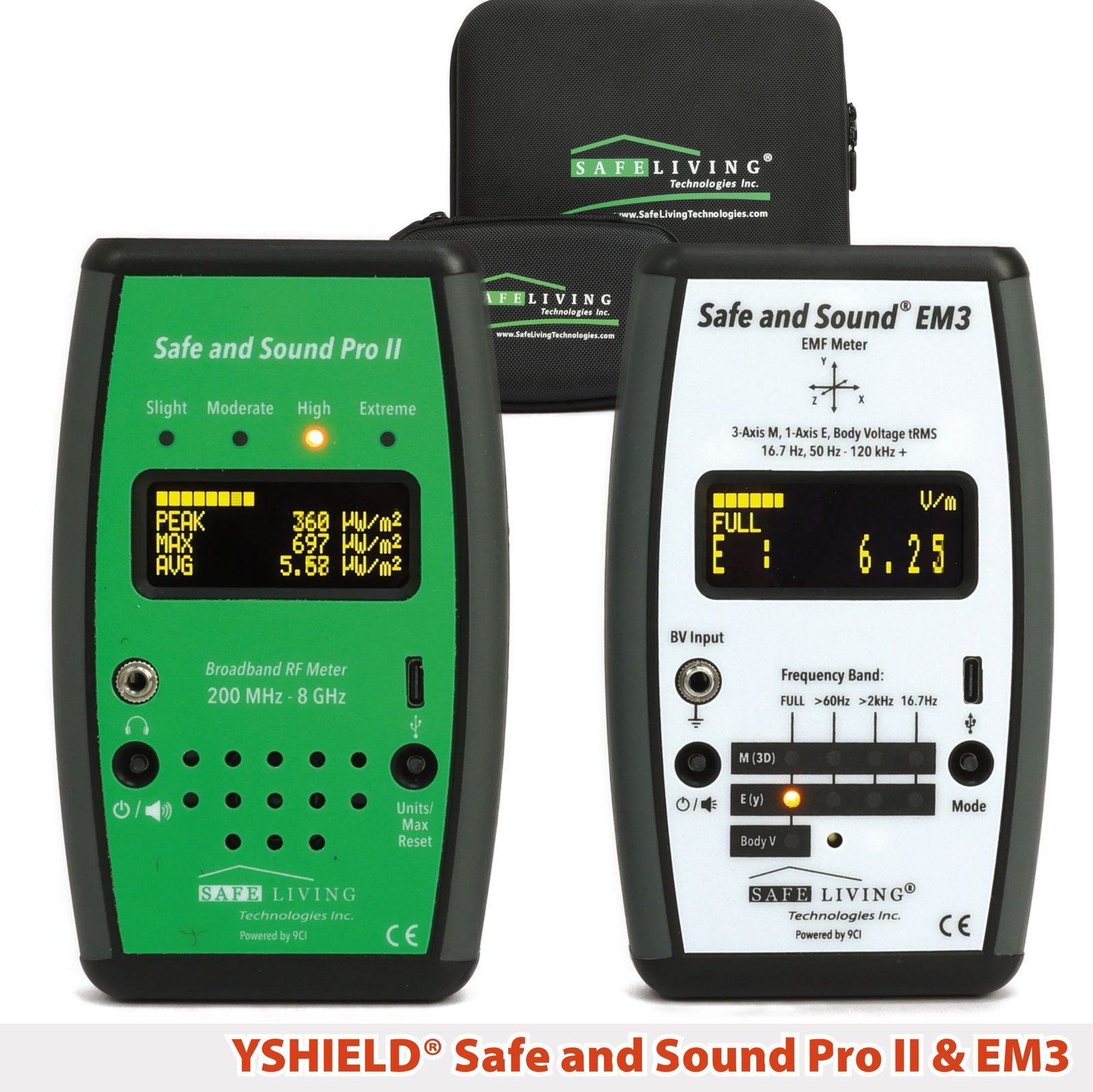 Safe & Sound EM3: Medidor 3 en 1 de campos magnéticos alternos, eléctricos y voltaje corporal, preciso y sensible, cumple normas de biología del edificio, perfecto para monitoreo detallado de EMF en viviendas y entornos de trabajo.