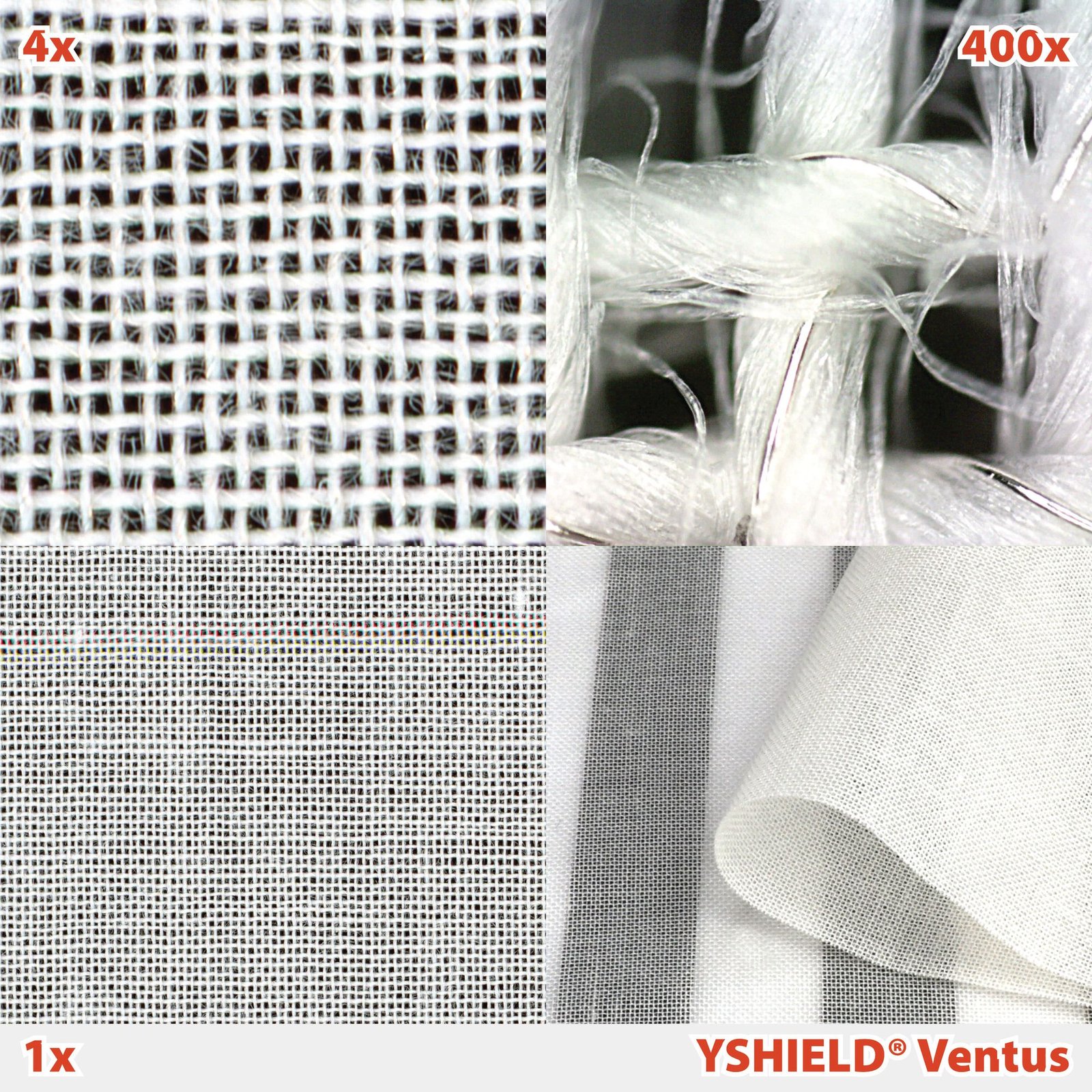 VENTUS de Swiss-Shield® es un tejido ecológico de algodón semitransparente diseñado para la protección frente a campos electromagnéticos de alta frecuencia (HF). Su uso típico es como cortina o para doseles. No es eléctricamente conductivo, por lo que no requiere conexión a tierra.